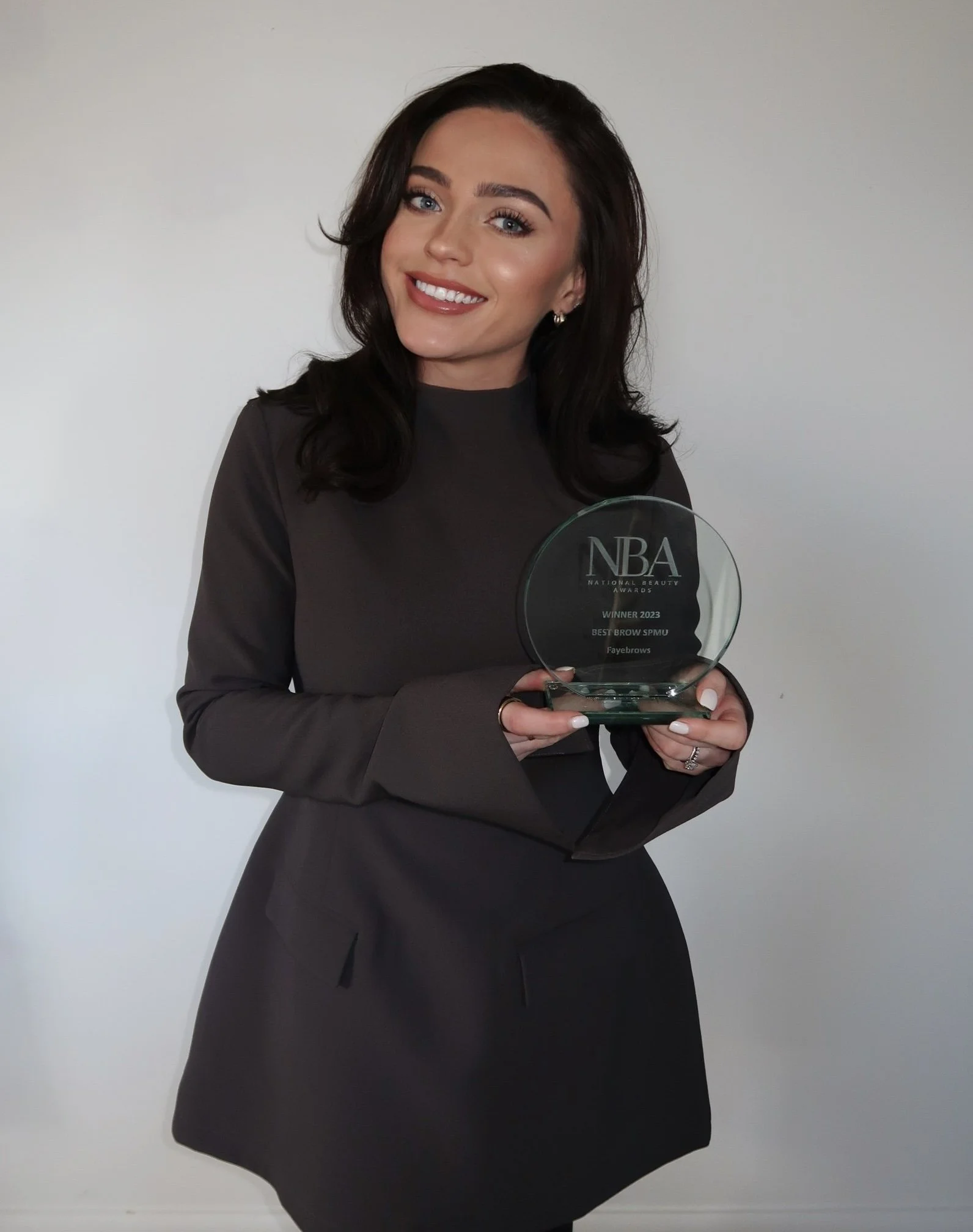 Faye won Best Brow SPMU Artist at the National Beauty Awards in 2023 and was also awarded Top 10 in the South East Region in 2023 at the UK Hair and Beauty Awards.